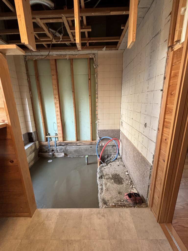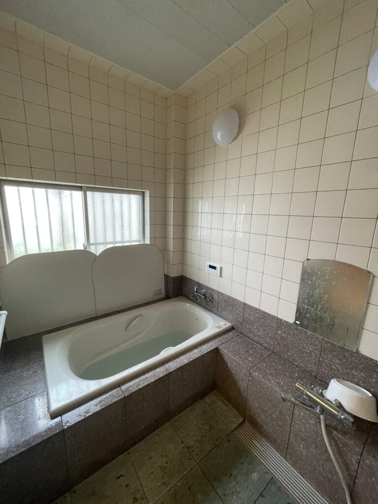 とても立派なお風呂でしたので、解体するのに少し時間がかかってしまいました。タイル床で冷たく、壁の目地にもカビが目立っていました。